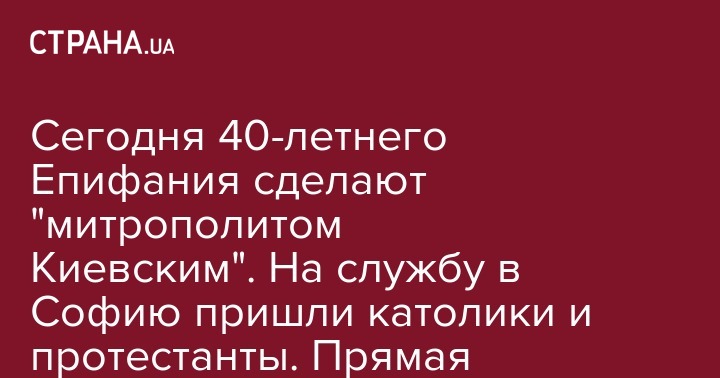Сегодня 40-летнего Епифания сделают "митрополитом Киевским". На службу в Софию пришли католики и протестанты. Прямая трансляция