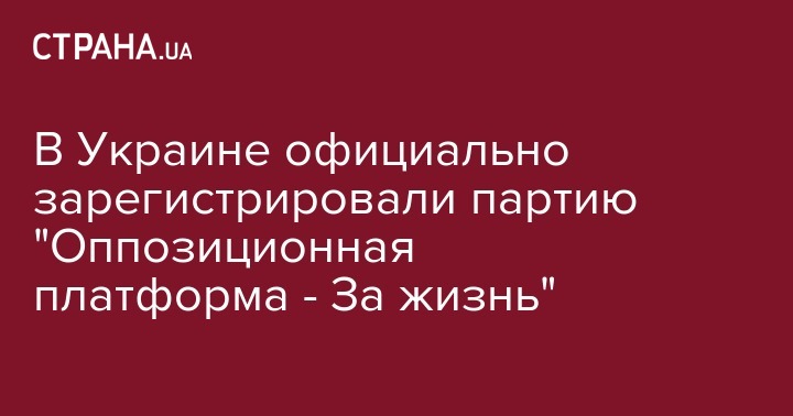 Партия "Оппозиционная платформа - За жизнь" сообщила, что официально зарегистрирована Минюстом Украины. Об этом говорится в поздравлении сторонникам партии на ее официальном сайте.