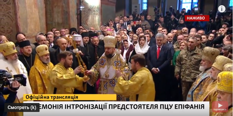 В Киеве 3 февраля в Софийском соборе прошла интронизация предстоятеля ПЦУ Епифания, на которую не пришли массово верующие и не явился многолетний глава УПЦ КП Филарет. Впрочем, церемония завершилась, предстоятель ПЦУ Епифаний считается полностью вступившим в свои права.