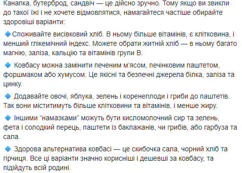 Впрочем, Супрун понимает, что "бутерброд и сандвич - это действительно удобно". Поэтому советует, как сделать здоровые бутерброды: