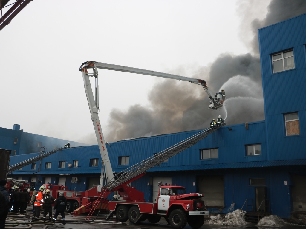 Пожар в складском помещении (хранение электроинструмента, пластика и картона) на Красноткацкой, 69, возник в субботу, 2 февраля, в 11:52 на площади 700 кв м, однако к вечеру распространился на площадь 10,5 тыс кв.м.