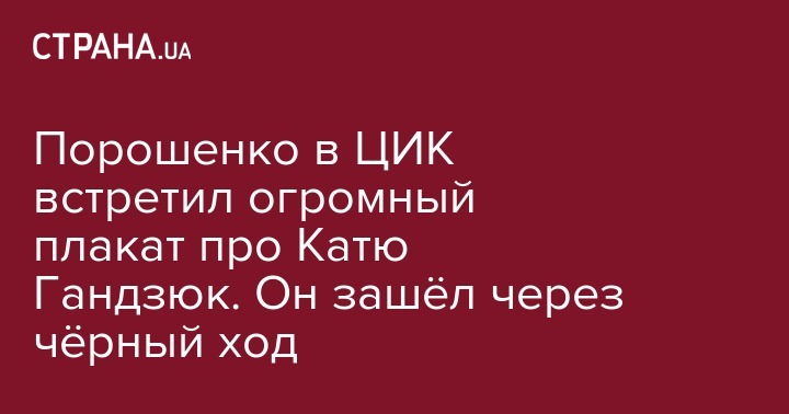 Порошенко в ЦИК встретил огромный плакат про Катю Гандзюк. Он зашёл через чёрный ход