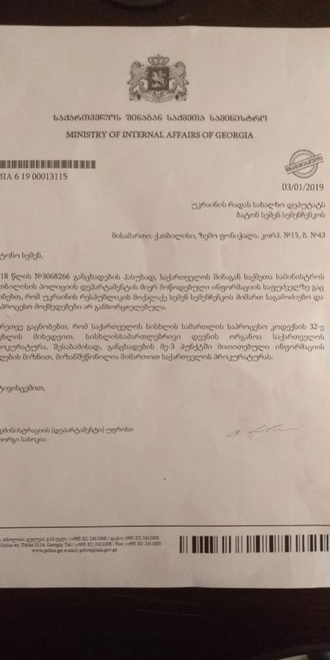 Экс-комбат батальона "Донбасс" Семен Семенченко разъяснил ситуацию с задержанием волонтеров в дни массовых протестов в Тбилисси в декабре прошлого года. Об этом он написал на своей странице в Facebook, опубликовав документы МВД Грузии, которые должны доказать его непричастность к делу "о хранении оружия".