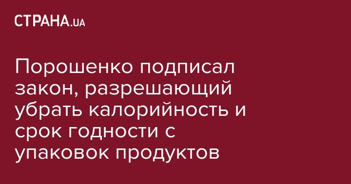 Порошенко подписал закон, разрешающий убрать калорийность и срок годности с упаковок продуктов