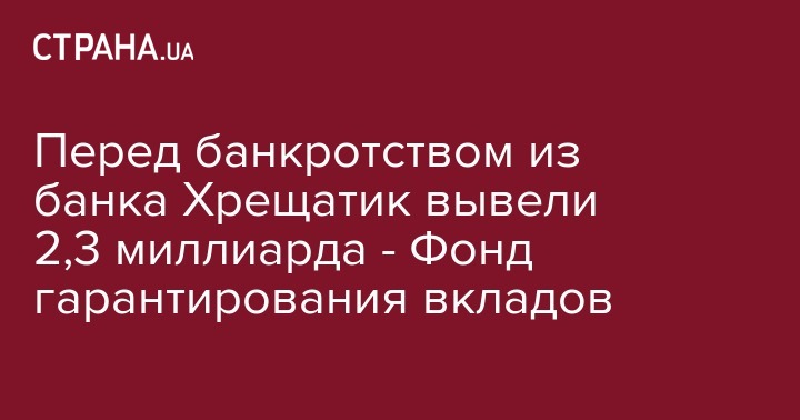 Ранее в Фонде гарантирования вкладов рассказали, что комплексный анализ неплатежеспособного банка "Хрещатик" свидетельствует о причастности руководства финучреждения и его владельцев к убыткам на сумму свыше 2,5 миллиарда гривен.