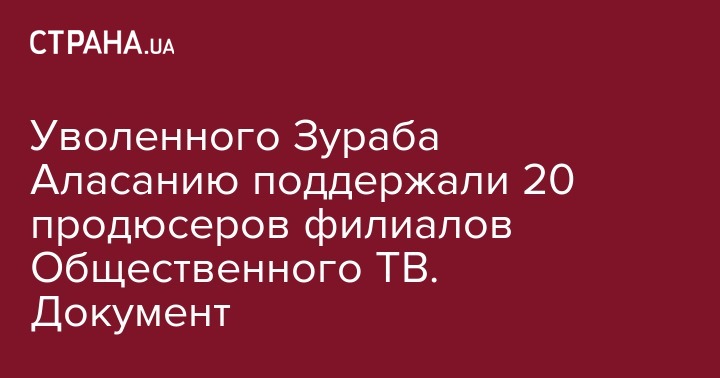 Двадцать продюсеров региональных филиалов ПАО "Национальной общественной телерадиокомпании Украины" (НОТУ) подписали открытое письмо относительно решения Наблюдательного совета досрочно прекратить контракт с председателем правления Зурабом Аласанией, сообщает сайт Общественного ТВ.