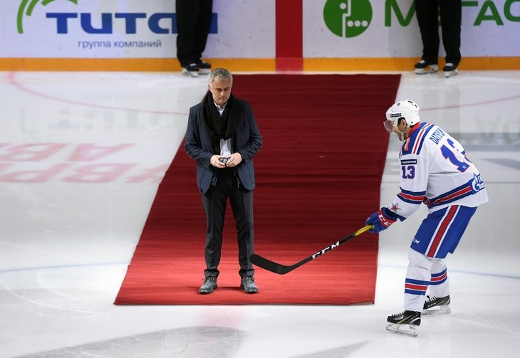 Как передает портал Sports Моуринью приехал в подмосковную Балашиху по приглашению ХК Авангард, чтобы посмотреть их матч против СКА. Перед началом игры португалец должен был провести символическое вбрасывание - и с этим он удачно справился, но только он не знал, что нужно пожать руки хоккеистам. Когда звездного гостя окликнул хоккеист Павел Дацюк, разыгрался самый опасный момент вечера. Жозе Моуринью шлепнулся на лед.