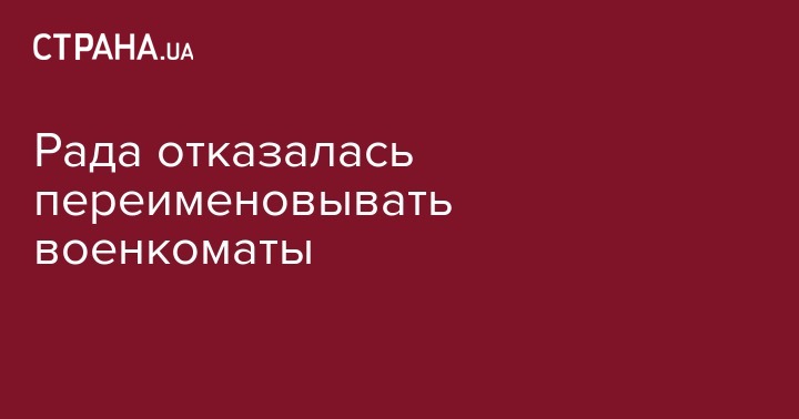 Верховная Рада на заседании 5 февраля отклонила законопроект № 9285 о переименовании "военных комиссариатов" в "территориальные центры комплектования и социальной поддержки". Об этом сообщает 112-Украина.