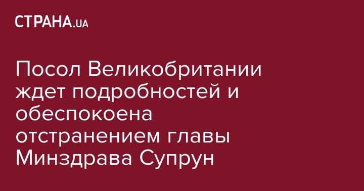 Посол Великобритании в Украине Джудит Гоф обеспокоена возможным влиянием решения суда об отстранении от должности и.о. министра здравоохранения Украины Ульяны Супрун на реформу здравоохранения. Об этом посол написала на своей странице в микроблоге Twitter во вторник.