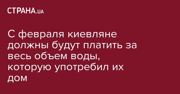 С февраля 2019 года жители дома должны платить за весь объем воды, которую употребил их дом. Об этом сообщает АО "АК "Киевводоканал", ссылаясь на новую методику распределения между потребителями объемов потребленных в доме коммунальных услуг, которая введена в действие с 25 января текущего года.