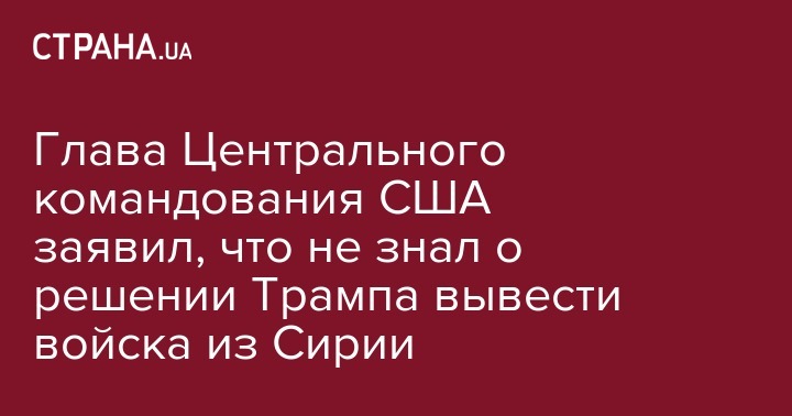 Глава Центрального командования вооруженных сил США генерал Джозеф Вотел во вторник заявил, что решение президента США Дональда Трампа вывести американские войска из Сирии принималось без его ведома.