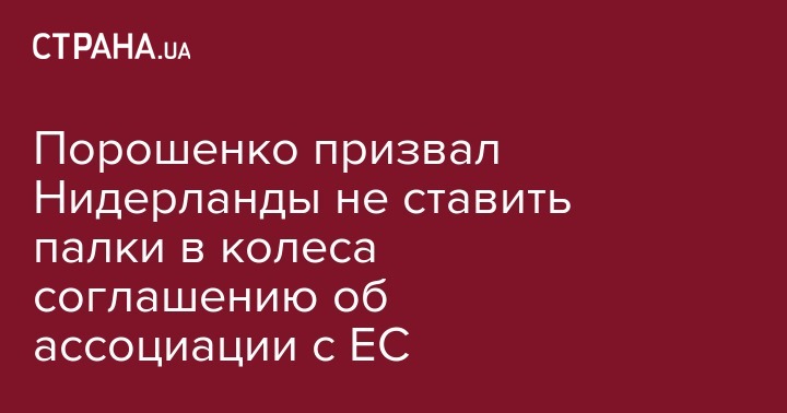 Порошенко призвал Нидерланды не ставить палки в колеса соглашению об ассоциации с ЕС