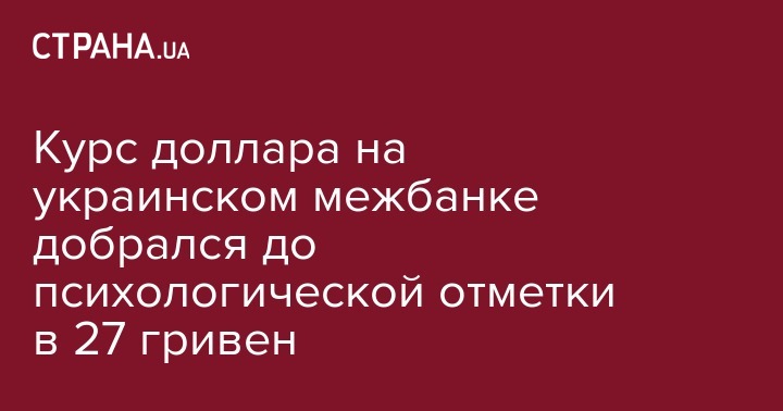 Курс доллара на украинском межбанке добрался до психологической отметки в 27 гривен