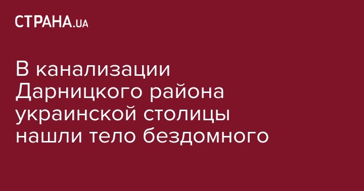 В канализации Дарницкого района украинской столицы нашли тело бездомного