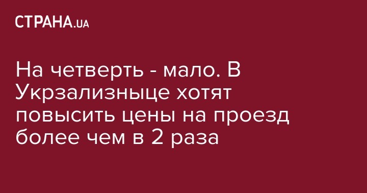 В "Укрзализныце" считают, что запланированного на 2019 год повышения стоимости билетов на поезда на четверть недостаточно, чтобы сделать перевозки безубыточными. Об этом пишет "Радио Свобода"