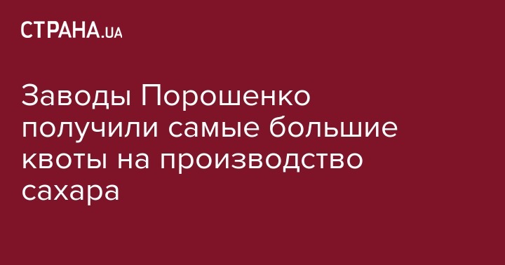 В Минагропроде выдали наибольшие квоты на производство сахара для внутреннего рынка заводам, которыми владеет Петр Порошенко, сообщает "Дело" ссылаясь на приказ Минагропрода.