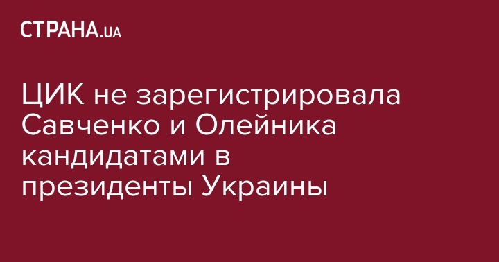 ЦИК не зарегистрировала Савченко и Олейника кандидатами в президенты Украины