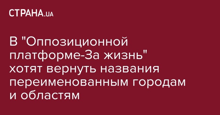 В Оппозиционной платформе - За жизнь констатировали, что переименование городов, сел и областей должно проводиться исключительно по инициативе и волеизъявлению жителей на местных референдумах.