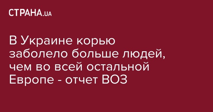 За 2019 год корью в Украине заболело больше людей, чем во всей Европе. Об этом говорится в отчете Всемирной организации здравоохранения, сообщает BBC.