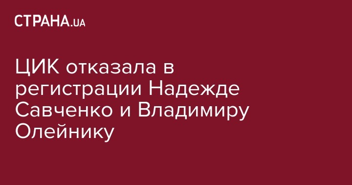 ЦИК отказала в регистрации Надежде Савченко и Владимиру Олейнику