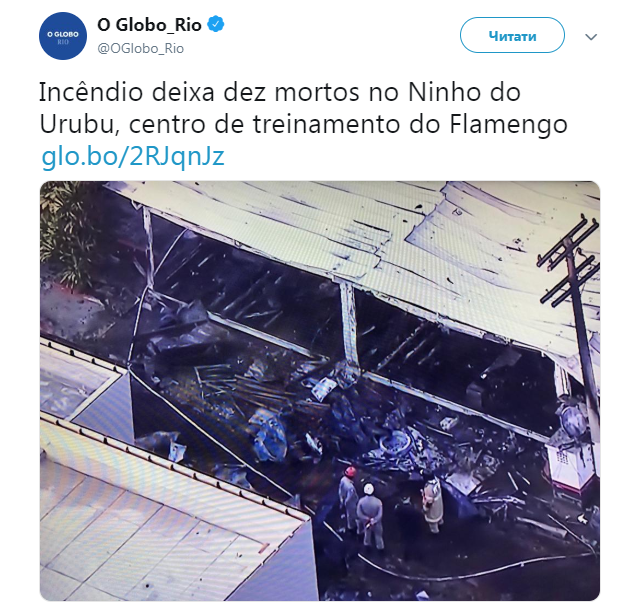 Пожар в Рио. 10 игроков Фламенго заживо сгорели на своей тренировочной базе. Фото