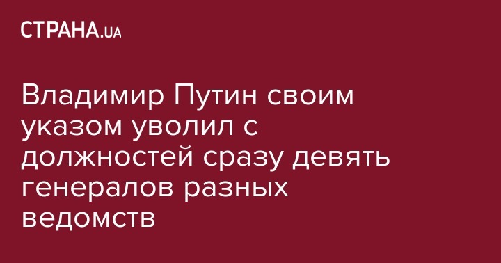 Президент России Владимир Путин снял с должностей девять генералов силовых ведомств. Об этом говорится в указе, опубликованном на интернет-портале правовой информации, передает