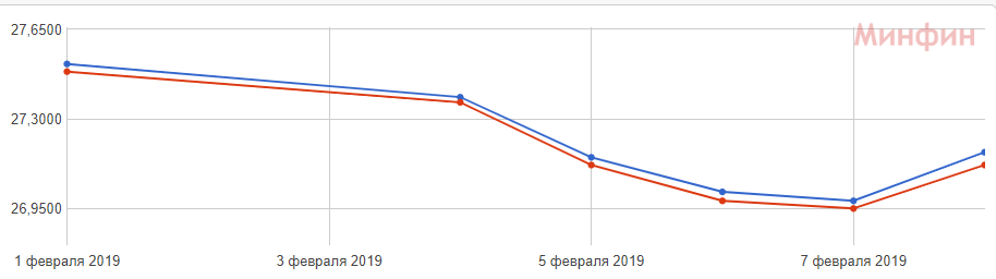 Напомним на начало недели, 4 февраля курс доллара   находился в диапазоне 27,3650 - 273850грн/$1.