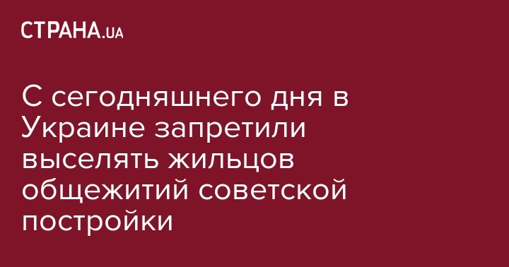 В пятницу, 8 февраля, в Украине в силу вступил закон, который предусматривает продление моратория на выселение жителей общежитий до завершения реализации Общегосударственной целевой программы передачи общежитий в собственность территориальных общин (без уточнения даты). Об этом пишет "Юрлига"