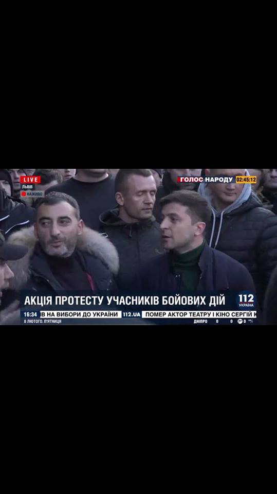 Кандидат в президенты Украины на предстоящих выборах Владимир Зеленский в пятницу, 8 февраля, во время общения с пришедшими на акцию протеста участников боевых действий против участия "клоунов" в президентской кампании, которая состоялась во Львове по заказу АП, был замечен в компании личного охранника бизнесмена Игоря Коломойского.