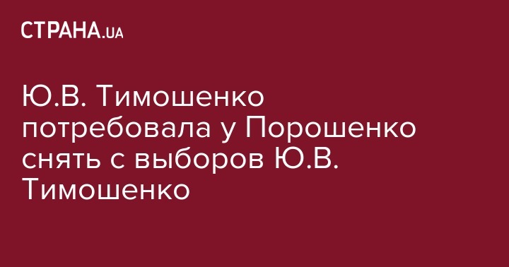 Ю.В. Тимошенко потребовала у Порошенко снять с выборов Ю.В. Тимошенко