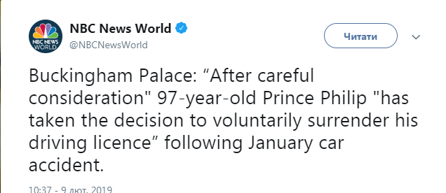И в итоге принц решил отказаться от своих водительских прав и больше никогда не садиться за руль. Об этом в Twitter сообщает NBC со ссылкой на заявление Букингемского дворца.