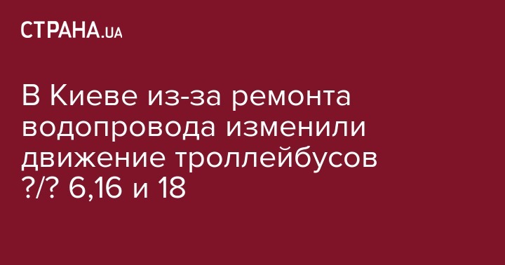 В Киеве из-за ремонта водопровода изменили движение троллейбусов №/№ 6,16 и 18