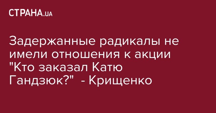 "Во время несения полицейской службы была замечена группа лиц, явно организованные, которые пытались скрыть лица. Полицейским это дало основания, согласно закону, проверить их документы. Они не смогли объяснить цель, полицейским это дало основания провести поверхностную проверку. Это позволило на месте выявить несколько ножей, стартовый пистолет... Поэтому мы приняли решение доставить 30 человек в полицейское управление. Во время этого события ни один не заявил, что пришел на акцию под условным названием "Кто заказал Катю Гандзюк?". У них не было символики, атрибутики, баннеров, которые указывали бы на то, что они пришли с этой целью", - сказал Крищенко.