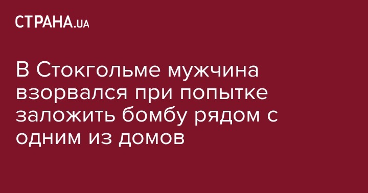 Местная полиция считает, что мужчина пытался заложить бомбу возле одного из домов к югу от Стокгольма и в этот момент произошел взрыв. Мужчина погиб на месте от полученных травм. В районе, где произошел взрыв, начали эвакуировать местных жителей.