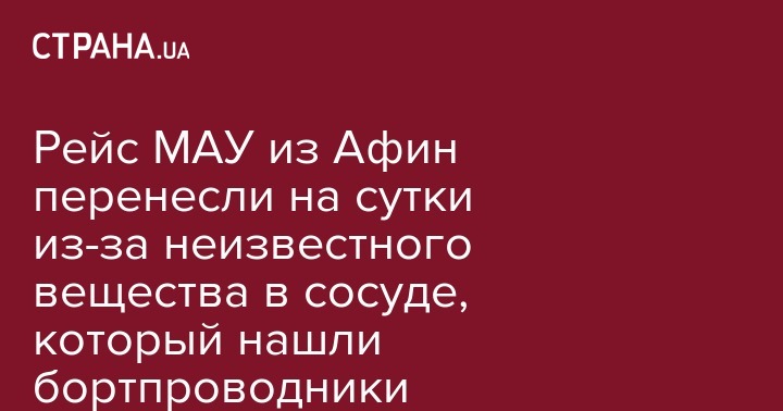 В аэропорту Афин на борту самолета, который должен был осуществлять рейс в Киев, обнаружили вещество неизвестного происхождения, полет отложили на сутки. Об этом сообщает пресс-служба авиакомпании "Международные авиалинии Украины" (МАУ) в Facebook.