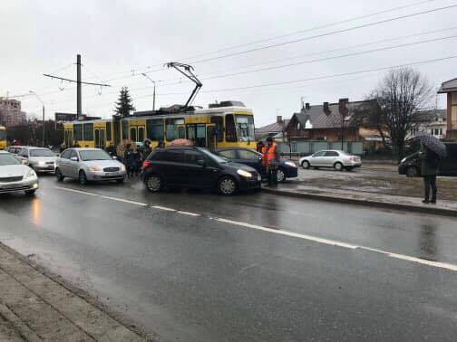 Во Львове трамвай протаранил легковушку