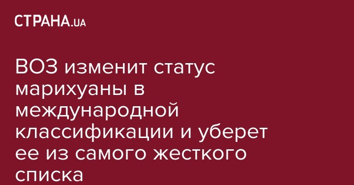 Это значит, что организация радикально изменила свою позицию по этому вопросу. В течение 60 лет эксперты ВОЗ считали, что марихуана не может использоваться в качестве лекарственного средства. Однако сейчас Экспертный комитет по вопросам наркотической зависимости предлагает убрать каннабис и его продукты из Списка IV в Единой конвенции ООН о наркотических средствах, передает Newsweek