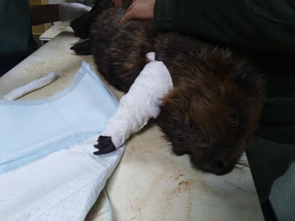 В Киеве спасли из смертельного капкана бобра Василия с перебитой лапой. Фото