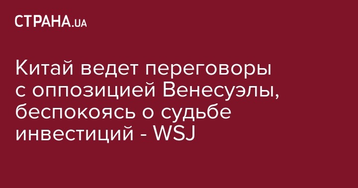 Китай проводит переговоры с венесуэльской оппозицией, чтобы обеспечить сохранность своих инвестиций в Венесуэлу в случае смены власти. Об этом сообщает газета The Wall Street Journal со ссылкой на источники.