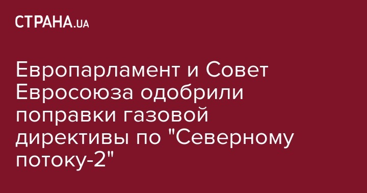 Европарламент и Совет Евросоюза одобрили поправки газовой директивы по "Северному потоку-2"