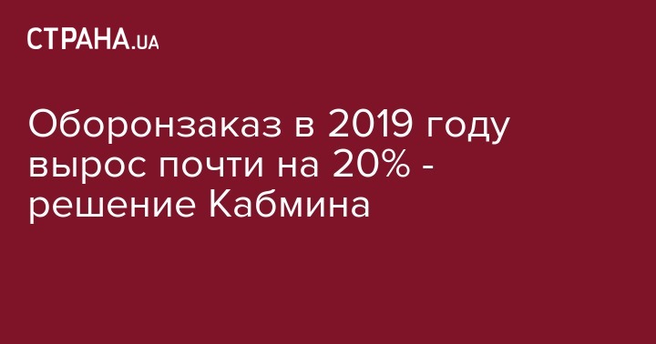 Оборонзаказ в 2019 году вырос почти на 20% - решение Кабмина