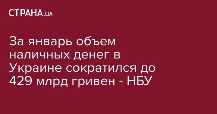 За январь объем наличных денег в Украине сократился до 429 млрд гривен - НБУ
