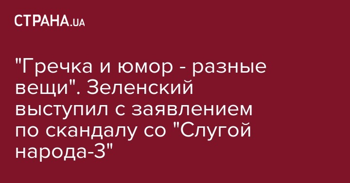 "Гречка и юмор - разные вещи". Зеленский выступил с заявлением по скандалу со "Слугой народа-3"
