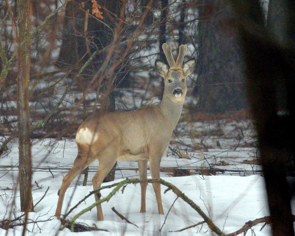 "Каждый готовится к весне по-своему: кто, например, отращивает новенькие пушистые рожки. К осени они станут настоящими раскидистыми рогами, а пока мы можем полюбоваться мягкими и пушистыми пантами жителей зоны отчуждения", - говорится в сообщении.