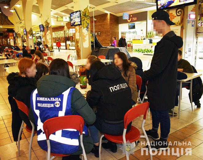 Во время рейда" Дети улицы" в ТРЦ в Оболонском районе столицы правоохранители выявили подростков, которые распивали алкоголь на футкорте. Полицейские зафиксировали три таких факта. На нарушителей составили протоколы по ст. 178 (Распитие пива, алкогольных, слабоалкогольных напитков в запрещенных законом местах или появление в общественных местах в пьяном виде) Кодекса Украины об административных правонарушениях. Также выяснилось, что алкоголь подросткам в супермаркете покупали взрослые или старшие друзья.