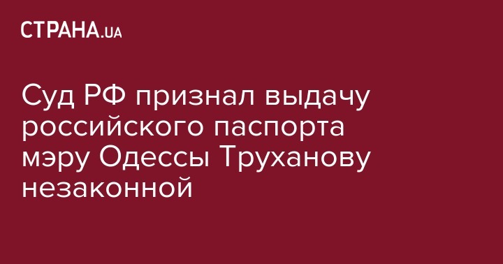 Сергиево-Посадский городской суд Московской области (Россия) признал незаконной выдачу паспорта гражданина Российской Федерации мэру Одессы Геннадию Труханову. ОБ этом пишут "Украинские новости" со ссылкой на решение суда.
