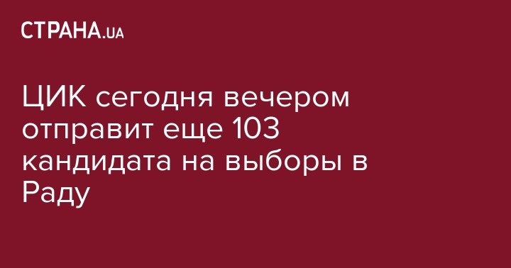 Центральная избирательная комиссия планирует зарегистрировать на ближайшем заседании 103 новых кандидата в депутаты Верховной Рады на промежуточные выборы во всех 7 округах 17 июля.