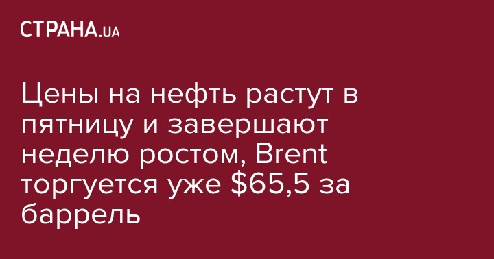 Цены на нефть растут в пятницу и завершают неделю ростом, Brent торгуется уже $65,5 за баррель