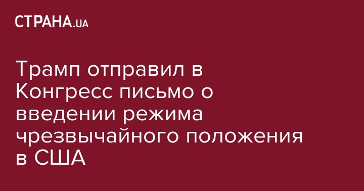 Президент США Дональд Трамп направил в обе палаты Конгресса письмо, в котором сообщил о введении в стране режима чрезвычайного положения. Об этом со ссылкой на американские издания пишет "Интерфакс".