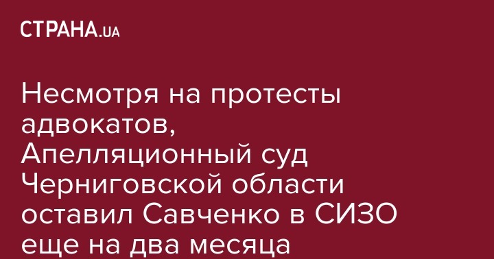 Несмотря на протесты адвокатов, Апелляционный суд Черниговской области оставил Савченко в СИЗО еще на два месяца
